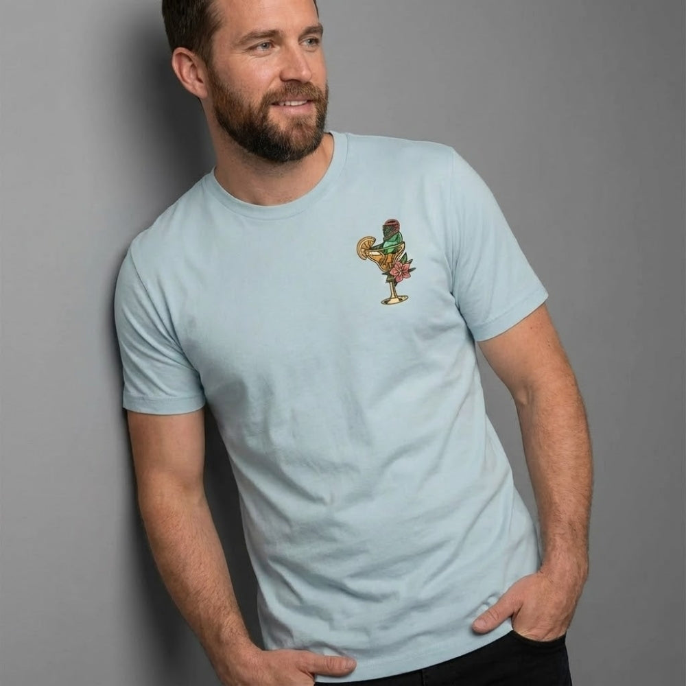 The Rip & Sip Margarita Tee showcases our laid-back lax culture through meticulously crafted tattoo-style artwork. Our signature Lax frog lounges in a margarita glass, celebrating those post-wall ball victories. The design captures that sweet spot between grinding through morning practice and hanging with your squad, printed on a lightweight cotton-poly blend that's built for summer comfort.