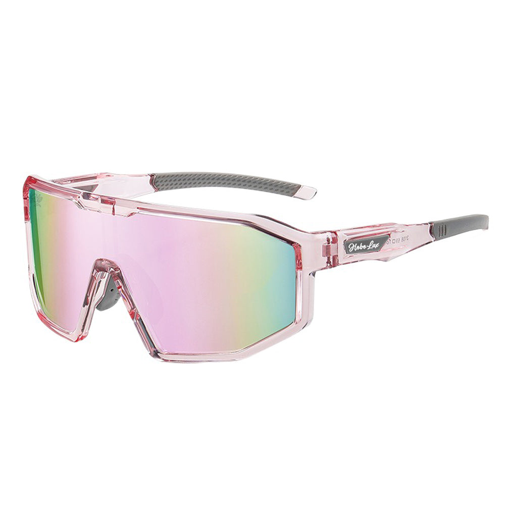 Pink transparent frames and prismatic pink polarized lenses bring bold color and serious clarity.