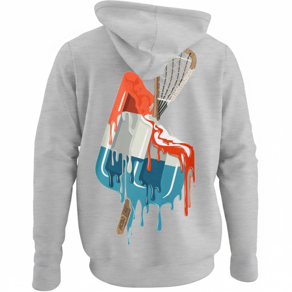 The 'Laxsicle' hoodie blends the traditional wooden lacrosse stick with the frozen sweetness of a red, white, and blue popsicle. Perfect for players with a sense of humor, summer and fall laxers, or as a fun gift for anyone who appreciates creative lacrosse designs with a patriotic twist. Whether it's for chilly tournament mornings, post-practice comfort, or just adding some personality to your lacrosse wardrobe, this design is guaranteed to score some laughs and style points.